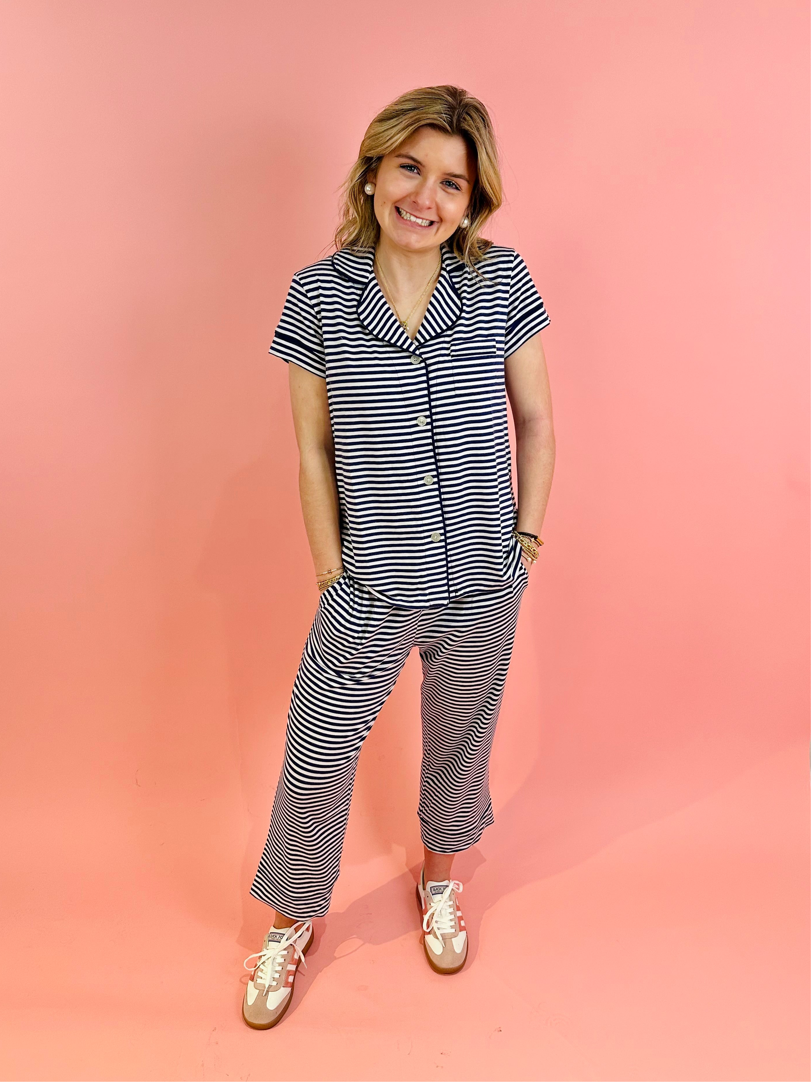 Essential Stripe Navy Pima Knit Capri Set