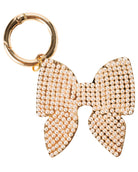 Add a touch of elegance to your bag with our Pearl Bow Bag Charm. The 2" pearl pave bow and 1" O-ring clasp add a fashionable and sophisticated touch to any accessory. Elevate your style with this stunning bag charm.