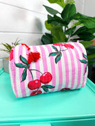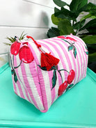 Cherry Stripes Makeup Bag