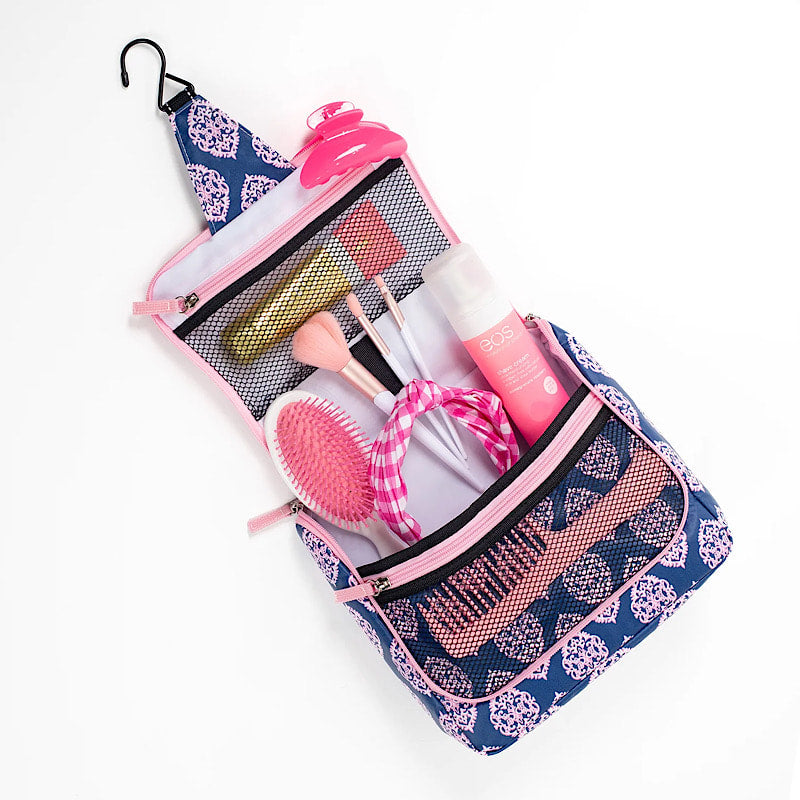 READY TO ROLL WITH YOUR FULL-SIZE BEAUTY ROUTINE. Our largest hanging toiletry bag has a place for everything and fits full-size bottles upright so you don't have to downsize when traveling or rearrange anything when hopping in the shower with your essentials. Great for home, dorm, or travel, this bag is also super easy to clean in the unlikely event of a leak or spill (we've all been there).
