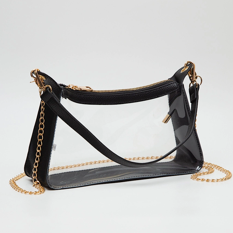 Get ready to make a statement with our Marilyn Clear Satchel Bag! This one-of-a-kind bag features a chic chain strap and a clear design that is sure to turn heads. Perfect for any occasion, this bag is a must-have for any fashion-forward individual.