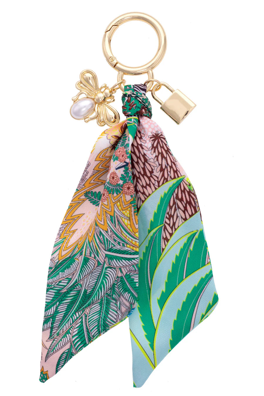 The Patricia is your new favorite mood-lifter. Featuring a dimensional bumble bee charm with pearl accents and vibrant scarf tie, this bag charm adds playfulness and polish in one go. Looks just as good on your gameday tote as it does clipped to a cosmetic case.