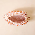 Keep your beauty must-haves tidy with our Essentials Quilted Cosmetic Pouch, now in a charming maple gingham print. Made from soft quilted fabric, this pouch is finished with a small handle for easy carrying and gold zipper hardware for a touch of polish. Inside, our signature wipeable lining keeps things neat and practical, making it the perfect size for daily essentials or on-the-go touch-ups.