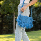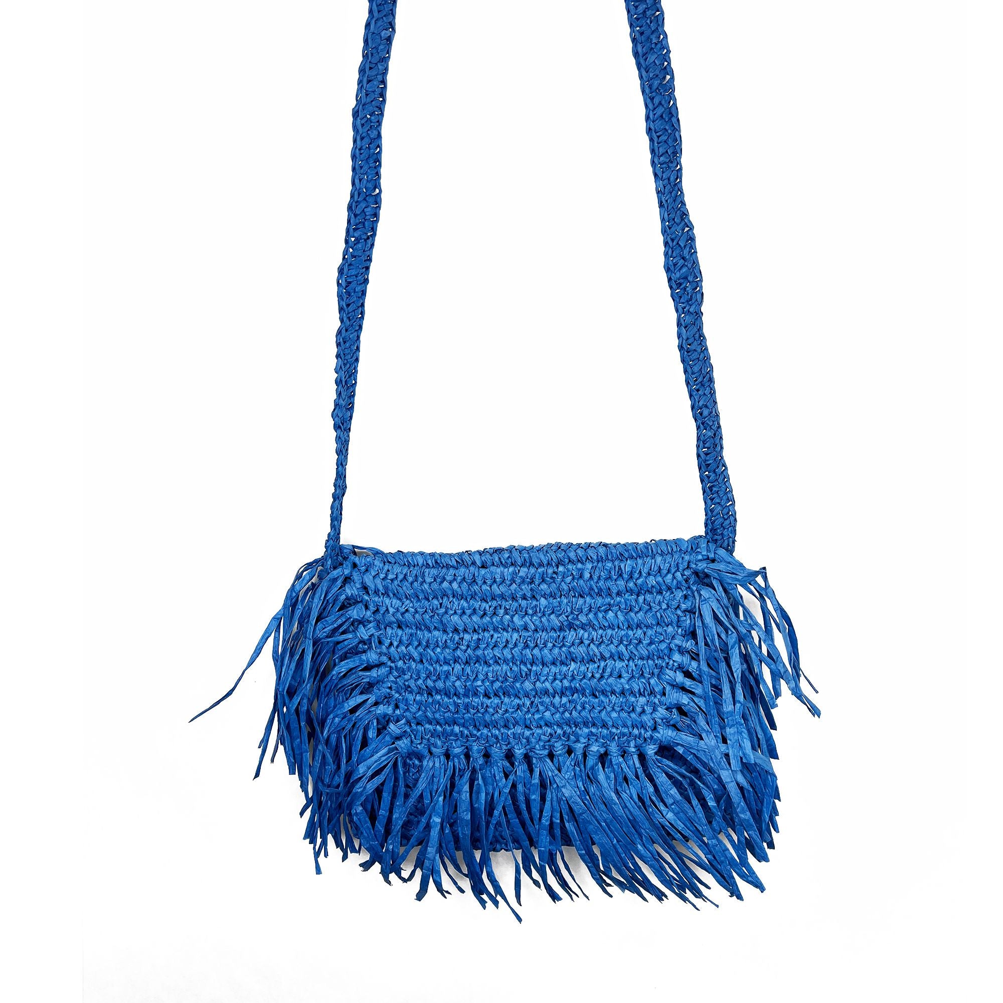 The Rhea Bag’s unique silhouette and eye-catching fringe detail create an ensemble centerpiece that effortlessly merges free-spirited charm with modern sophistication. The intricately woven raffia body boasts a tactile texture, inviting to the touch and adding a dynamic dimension to the bag’s overall appeal.