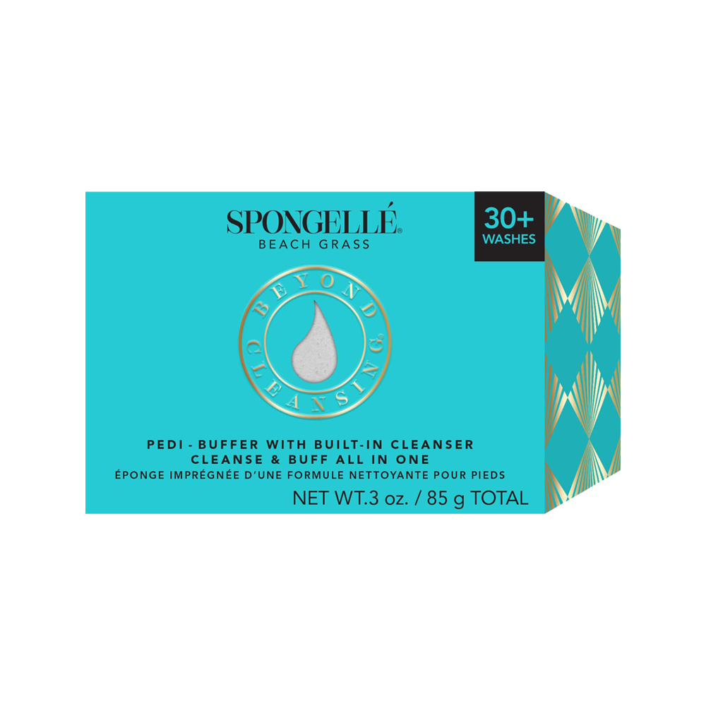 Formulated just for your feet, this buffer has a unique textured side that gently whisks away dry skin while cleansing, so feet are soft and silky. Enriched with extracts of peppermint and sea kelp to cleanse, buff and polish, Spongellé’s Pedi Buffer is the perfect solution for tired feet. Packaged in an easy to use size for travel.