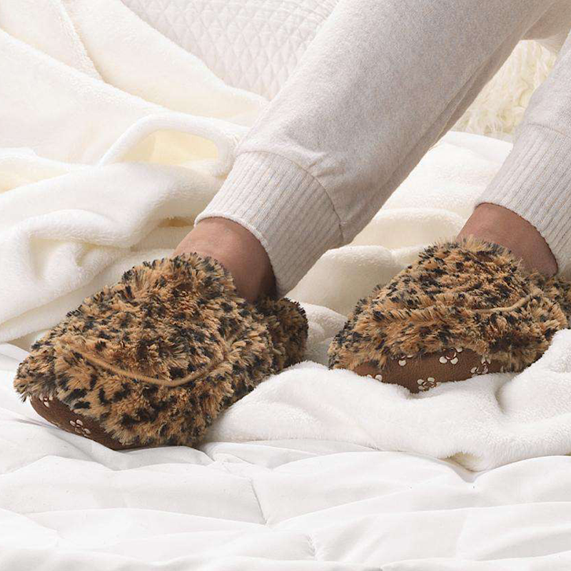 Warmies® Slippers are fully microwavable and gently scented with real French lavender for the ultimate comfort and relaxation. Made with luxurious faux fur and memory foam soles, these soft and stretchy slippers are one-size-fits-most, perfect for relieving stress and soothing tired, aching feet. Simply pop them in a microwave to provide up to an hour of soothing warmth and comfort.