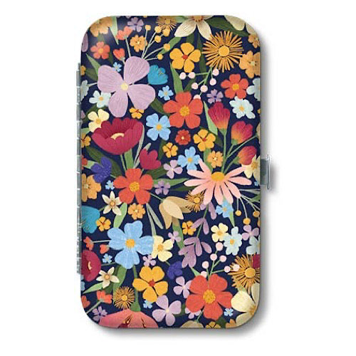 Manicure Set. 5.625" x 4.75" x 0.75". Includes 2 nail clippers, 1 tweezer, 1 nail file, 1 nail scissor and 1 cuticle pusher.
