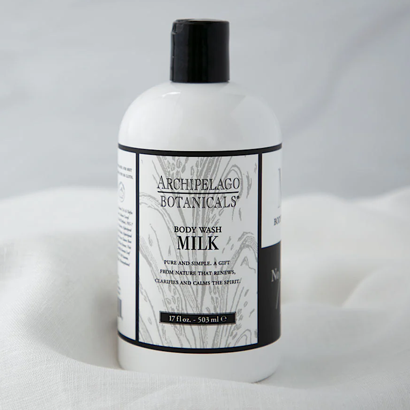 Begin your daily beauty routine with a gentle, foaming cleanser from one of Archipelago Botanicals best-selling aromatherapy bath and body collections. Our Milk Moisturizing Body Wash contains Dried Milk Solids, Soy, Oat, and Rice proteins that gently cleanse and exfoliate your skin. It washes away clean and clear leaving your skin feeling soft, smooth, and hydrated. This moisturizing body wash is highly recommended for dry skin. With all of the inherent benefits of its natural ingredients and its irresistibly fresh scent, it is no wonder Archipelago's Milk Body Wash is consistently recognized as one of the best moisturizing body washes.