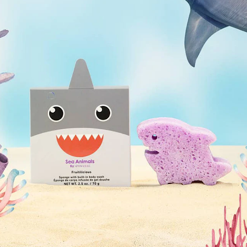 Spongellé® delivers a fascinating under-the-sea adventure with the fruitilicious Sea Animals Collection blending juicy watermelon, crisp apple, and sweet sugar. Promote playtime in the bath to strengthen interests, encourage learning, and make cleansing with the gentle formula a joyous activity. This travel-loving Sammy Shark Body Wash Infused Buffer® is packaged inside an adorable, collectable sea animal gift box. It is perfect for kids of all ages and suitable for sensitive skin.