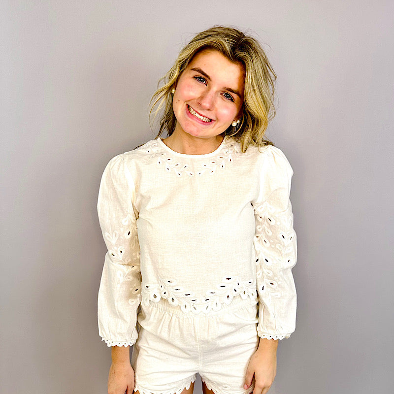 This embroidered top features a chic design and is effortlessly cool. With eyelet embroidery along the sleeves and hem, this relaxed cotton-linen long sleeve has a laid-back feel with just the right amount of polish.