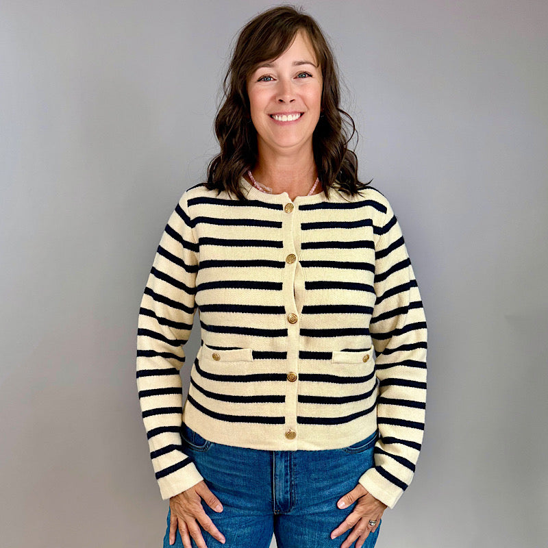 Black/White Striped Lady Jacket Sweater
