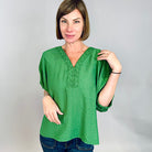 Braid Detail Notch Collar Green Blouse