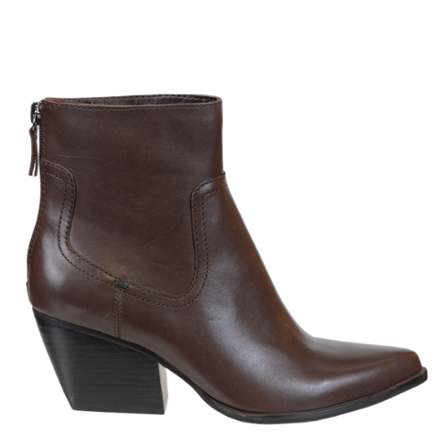 Modern brown leather western booties with a high fashion edge, Baton is infused with both heritage style and modern intrigue. This sleek essential is sophisticated yet playful with beautifully crafted details that give it a luxurious feel designed to elevate your wardrobe all year long with water resistant leather that can be wiped clean after outdoor wear.