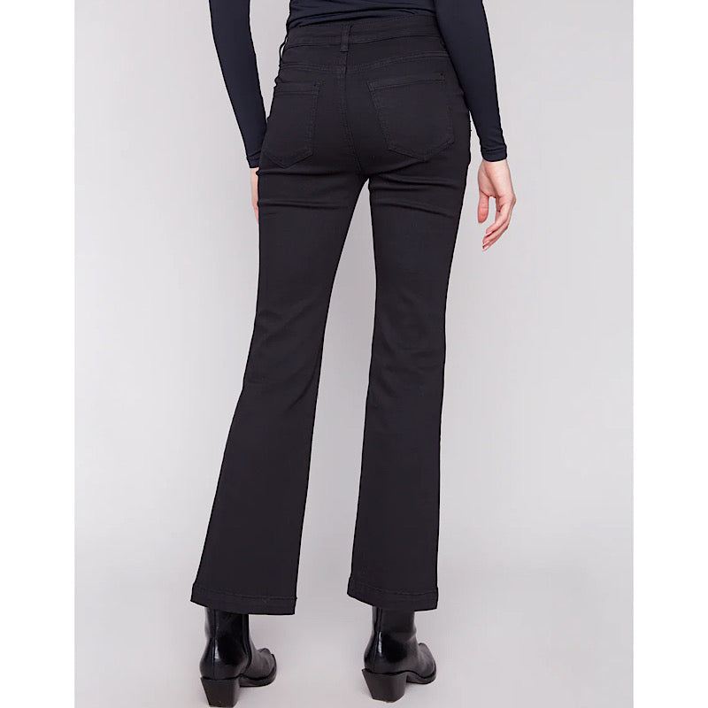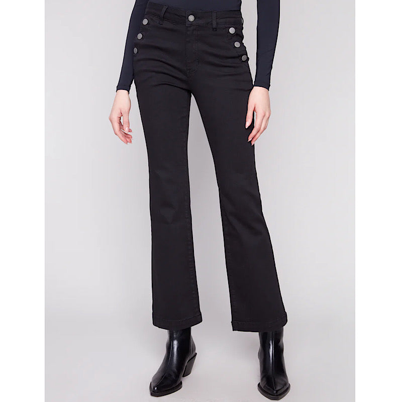 Flare Twill Pant w/ Button Detail Black