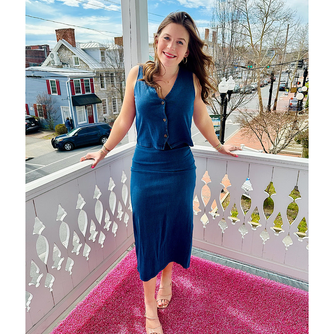 Gail Jersey Denim Midi Skirt