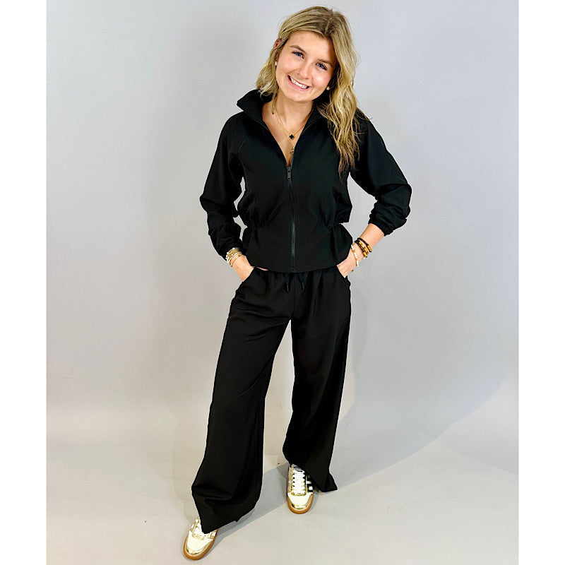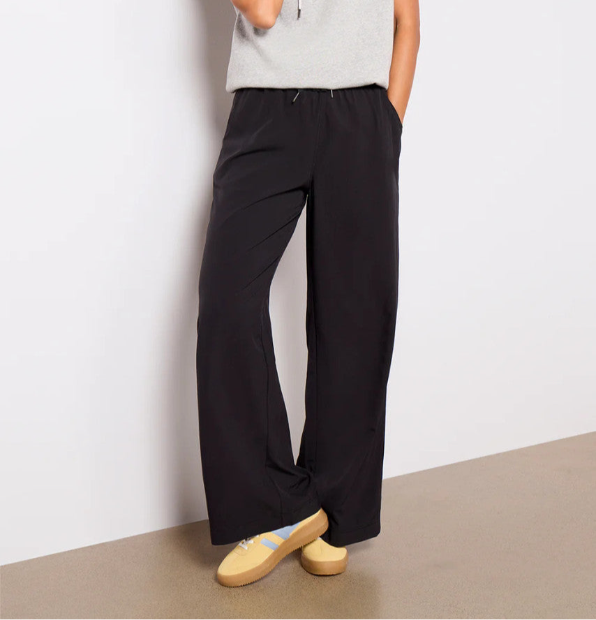 Made to move with you from workout to weekend plans, these wide leg pants by Spanx are crafted in comfortable four-way stretch fabric and feature a drawstring elastic waistband, side pockets, and a relaxed full-length leg.