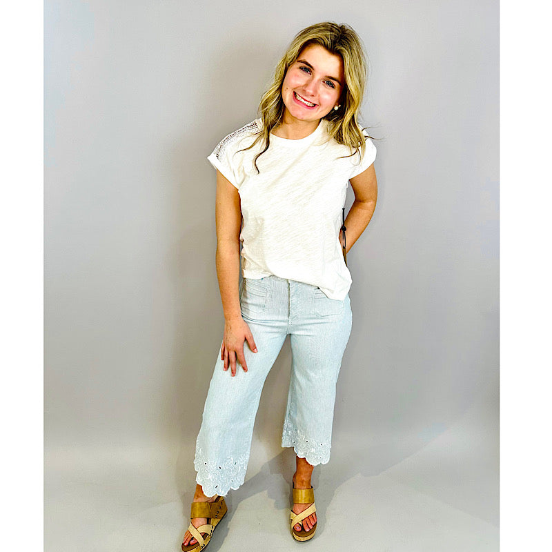 Wide Leg Crop Pant with Scallop Embroidered Hem