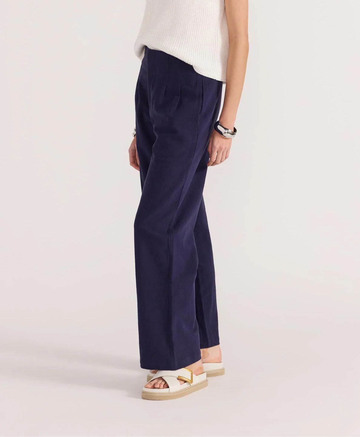 Luxe Linen Wide Leg Ankle Pant Italian Navy