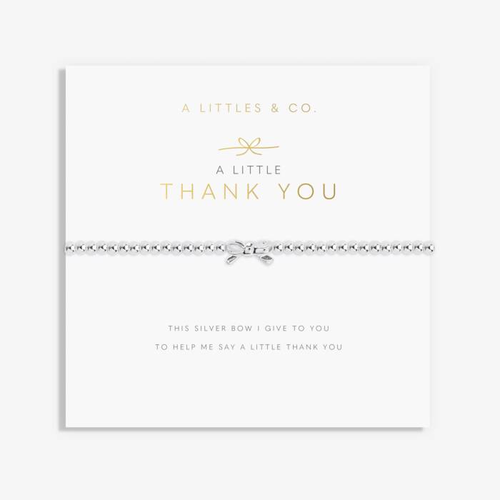 Our A Little 'Thank You' Bracelet features a captivating design that will dazzle with every movement. Featuring a stretch-bead style and a beautiful silver-plated charm, wrapped around one of our stylized cards and framed by a sweet poem. It's oh-so special.