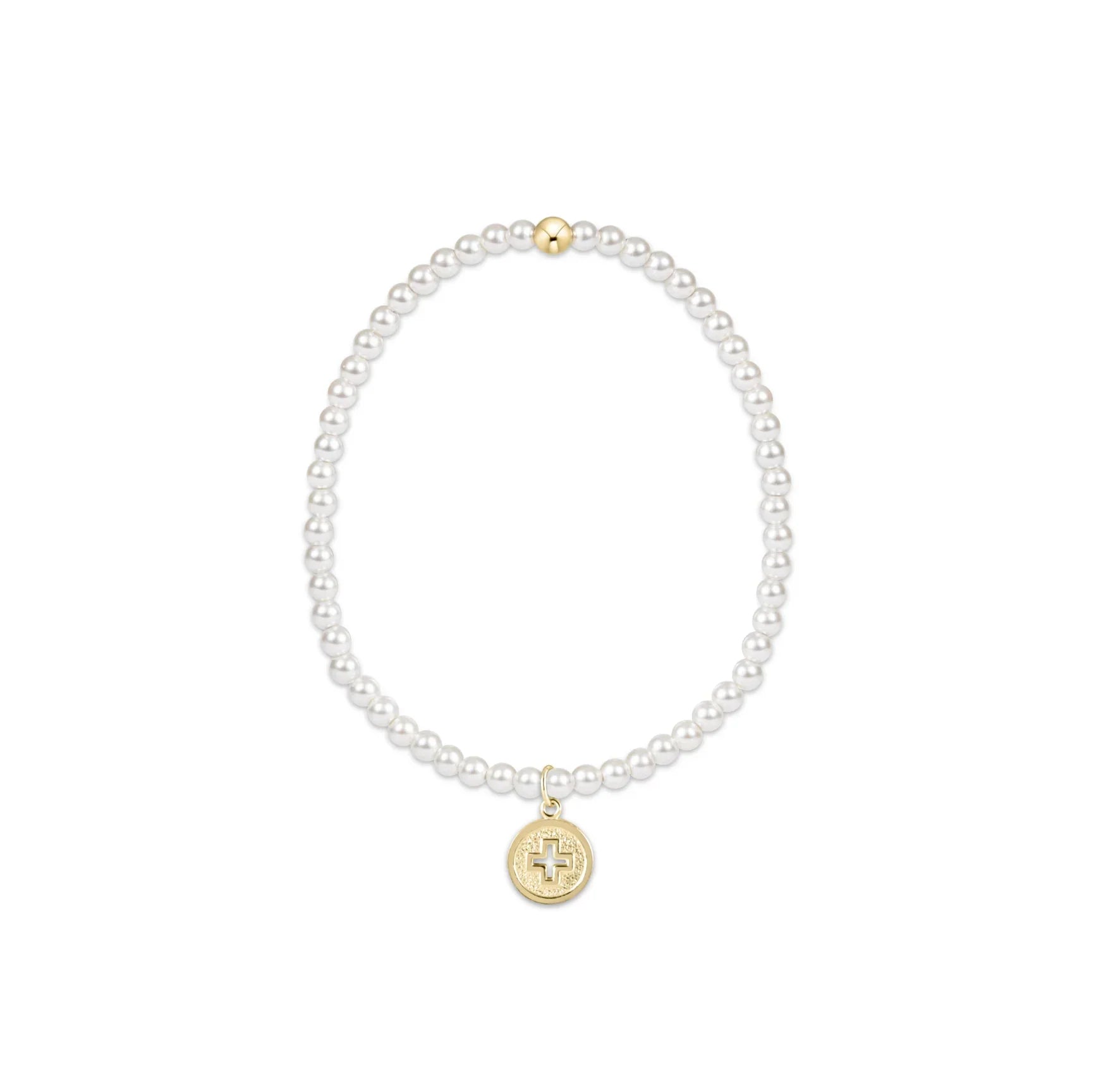 Classic Pearl 3mm Bead Bracelet - Signature Cross Gold Disc by enewton New! Remember where you came from.