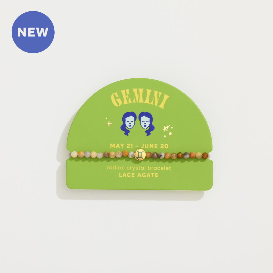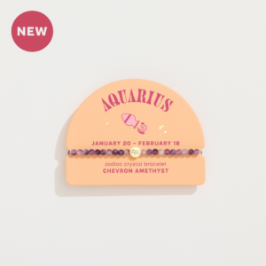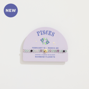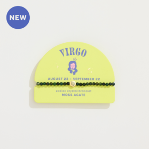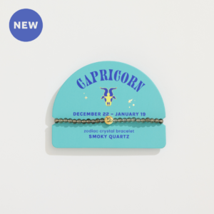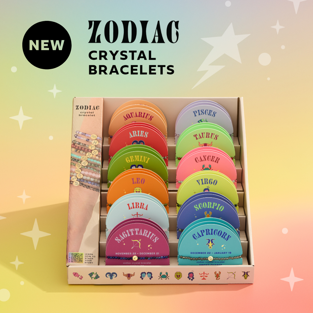 These crystals have been curated for each sign based on their metaphysical properties, which are described on the backer card, along with information about the zodiac sign. Each bracelet features a gold plated zodiac accent bead. Backer cards also feature birth date range and personality traits of the zodiac sign and a QR code linking to bonus digital content. Mini Zodiac Bracelets with 4mm beads are perfect for stacking – encourage customers to purchase multiple bracelets to ‘stack their story.’ Bracelet stacks can represent the main signs of their zodiac chart (sun, moon, and rising signs) or the zodiac signs of their favorite people! Merchandise alongside the new Zodiac Crystal Assortment!