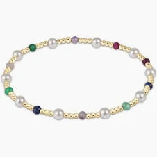 You will fall in love with this classic gold sincerity pattern 4mm bead bracelet with pearl and gemstone.