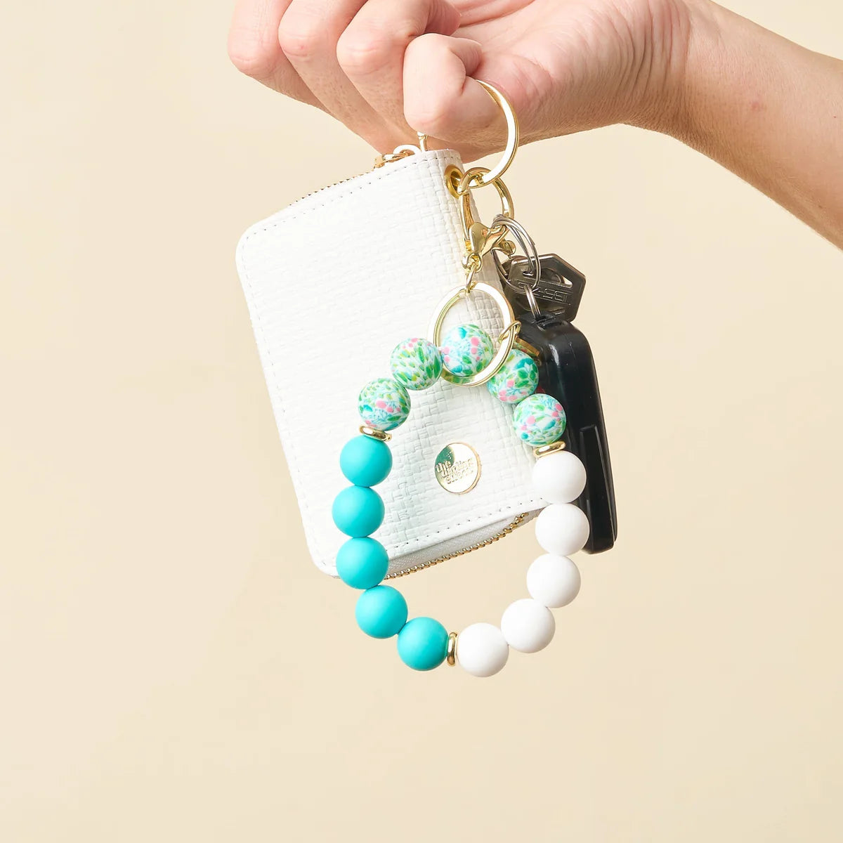 Hang onto your keys with ease. No more digging through your purse, diaper bag, backpack, or gym bag! This stylish and functional wristlet is made of soft silicone beads that slide on and off your hand comfortably.
