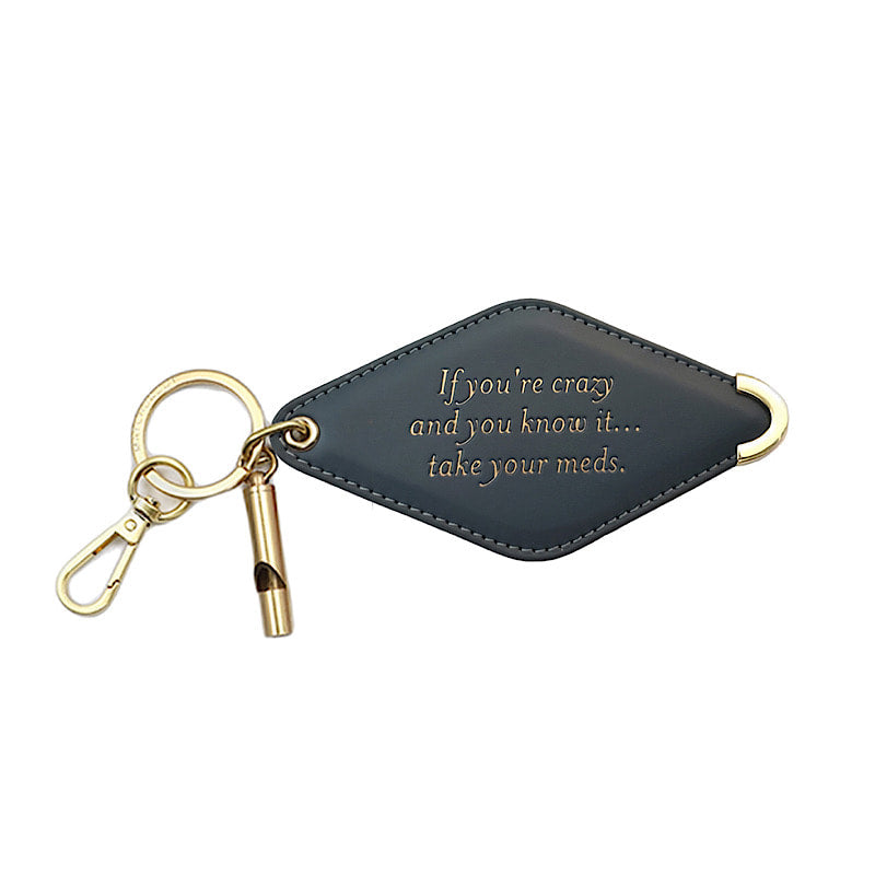 Fashionably funny, the new Matchdaddy key fob features an easy-find clasp and brass safety whistle.