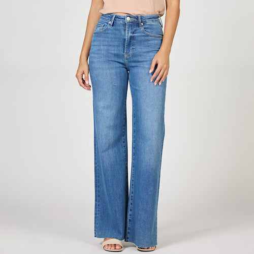 Fiona Wide Leg Raw Hem Fog Sky