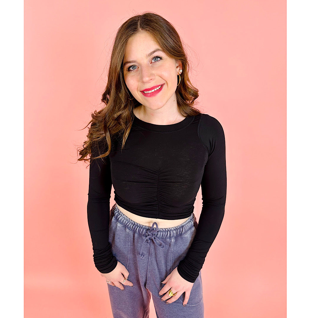 Tempo Ruched Long Sleeve Black