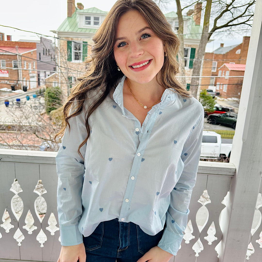 Dylan Light Blue Heart Button Down