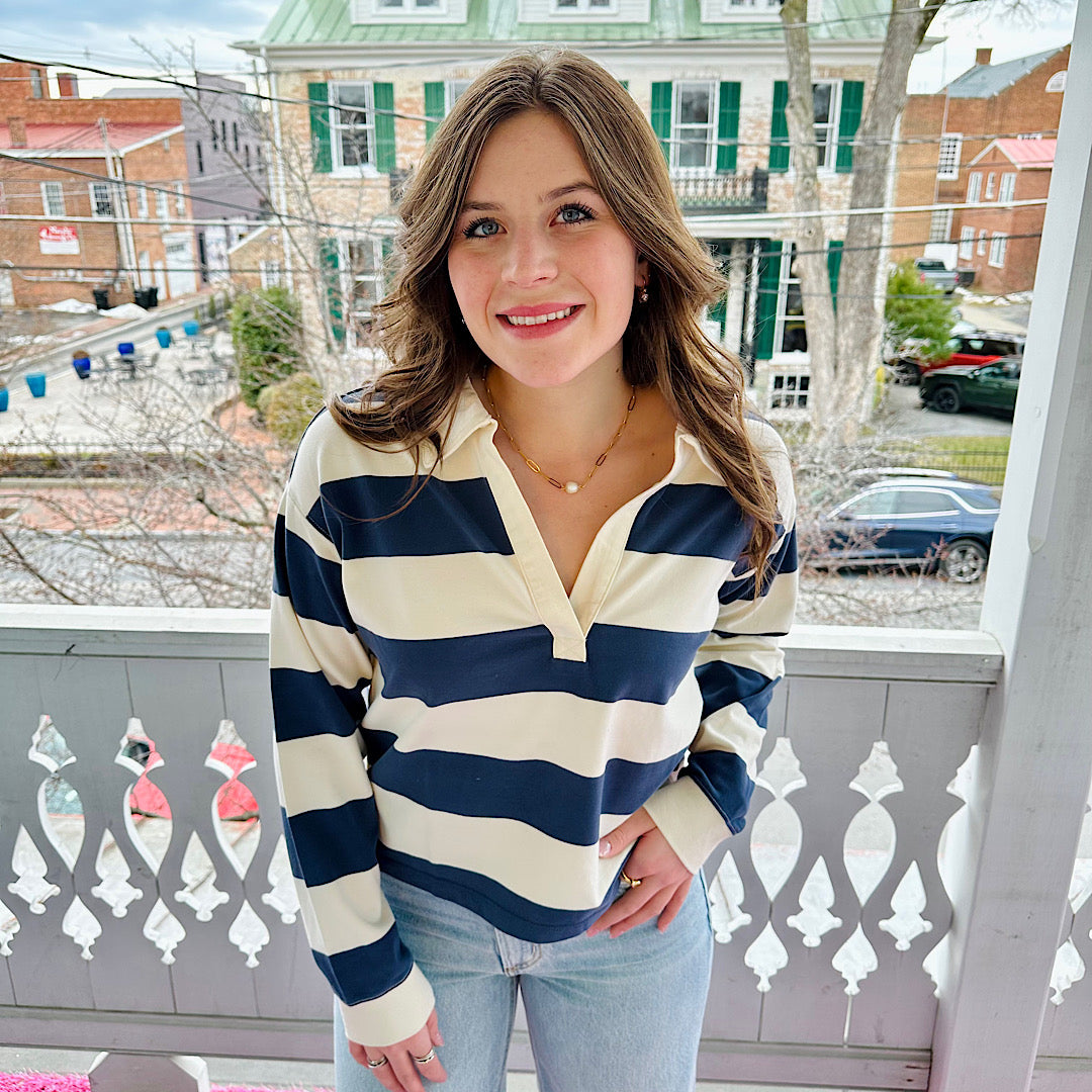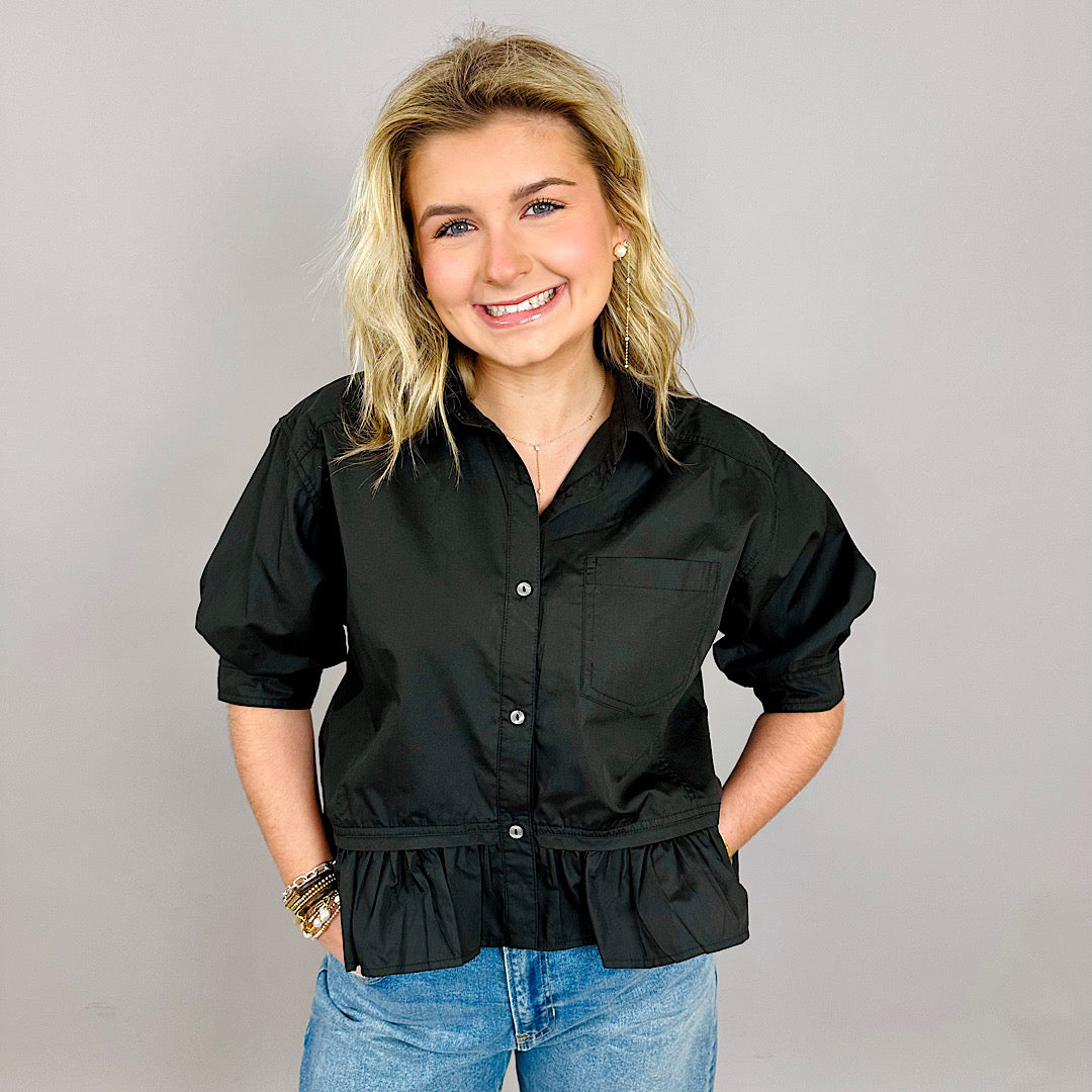 Cobalt Blue Gingham Cropped Ruffle Shirt
