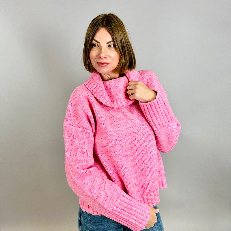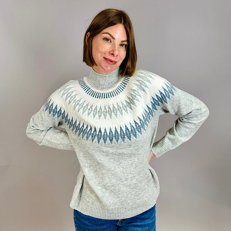 Pale Grey Mix Jacquard Mock Neck Sweater