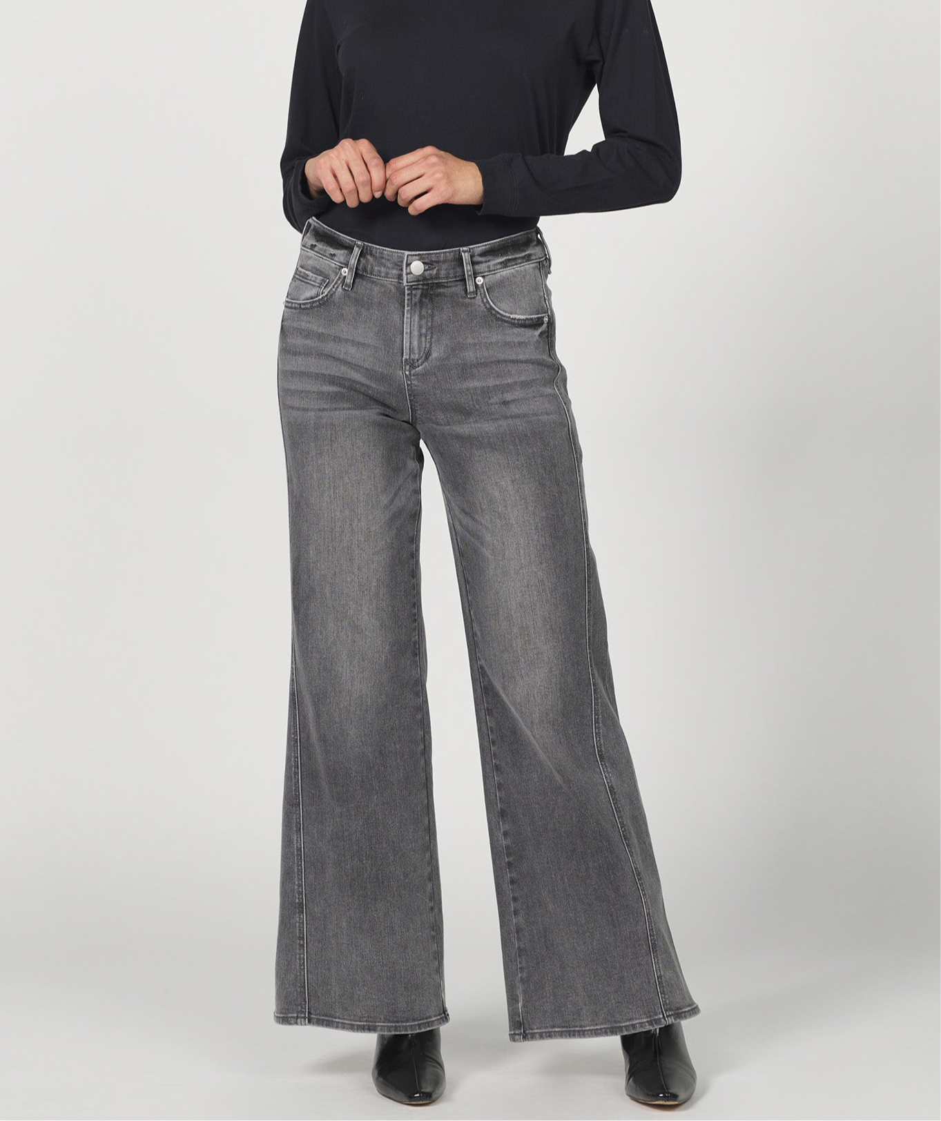 Wide Leg Stretch Denim Jacquard Flower Pants