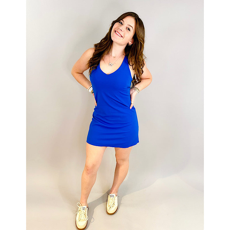 Spanx Get Moving V-Neck Dress Cerulean Blue
