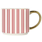 Add a festive touch to the holidays with our 14oz vertical red stripe mug. With classic candy cane-inspired stripes, it’s perfect for cozy mornings, peppermint lattes, and evenings by the fire. A timeless piece for gifting, seasonal tablescapes, and Christmas decor. DETAILS: • 14oz Fine Bone China • Size: 3.20" H x 3.75" W (5.45" w/ handle) • Original Design: Vertical Red Stripes • Design All Around Mug • Real Gold Details on Rim and Decal • Stackable with other 14 oz Sweet Water Decor Gold Handle Mugs • The design printed on each mug may vary slightly from one mug to another • Designed in the USA, Imported • Style No. CM191 CARE: • Hand Wash to Preserve Gold Finish • Wash Before Use and Avoid Abrasive Cloths When Cleaning • Do Not Microwave