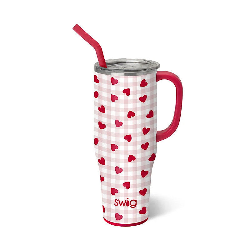 Hydrating has never been easier with our 40oz Insulated Mega Mug! A cup holder-friendly frame, a comfort-grip handle, and a plastic straw with a silicone flexi-tip all come together to create your new favorite Swig.