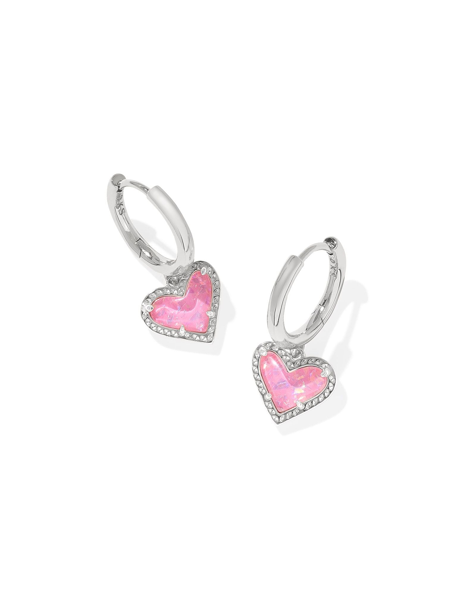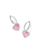 Hearts and huggies together—is there anything better? The Ari Heart Silver Huggie Earrings in Pink Iridescent Glitter Glass add that little something extra to your look with their playful asymmetrical design.