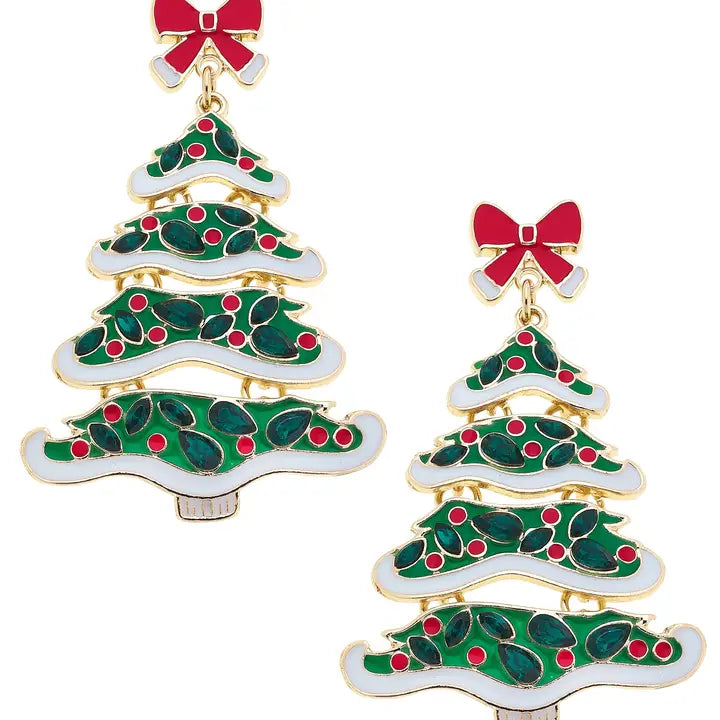 These enamel trees are decked out with dazzling jewels. A merry must-have for your earring collection.