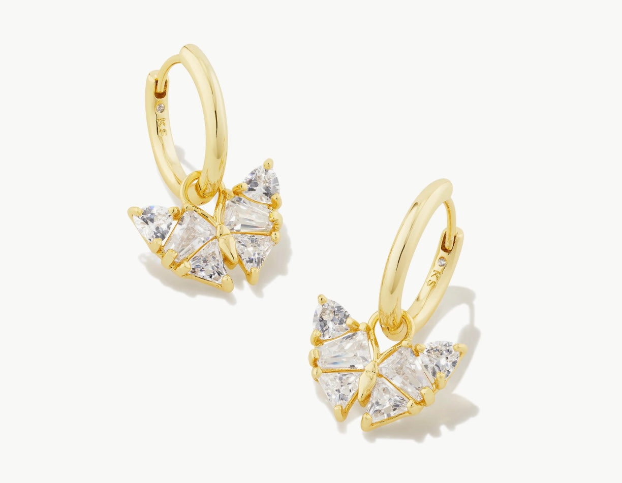 Kendra Scott: Blair Gold Butterfly Huggie Earrings in White Crystal