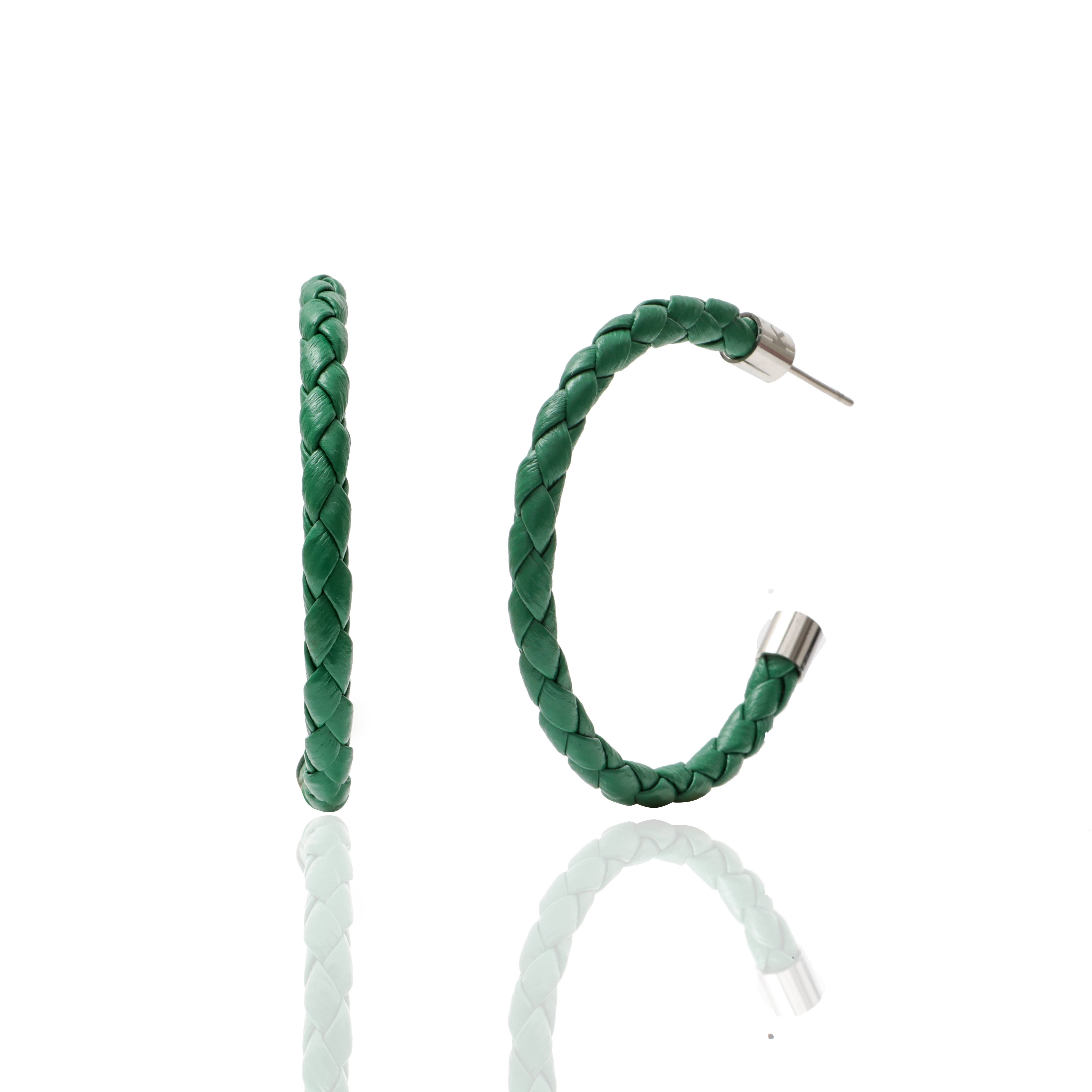 These beautifully braided genuine leather hoops are your new go-to earrings for everyday! Choose from a variety of matte, metallic and mixed styles. You'll love their seasonal crossover and game day appeal.