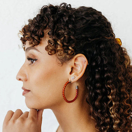 Beautifully woven into our braided hoop earrings, these two shades of deep red and orange are a great pop of neutral. Plus, a great way to celebrate one of our home-state teams - Virginia Tech Hokies!