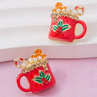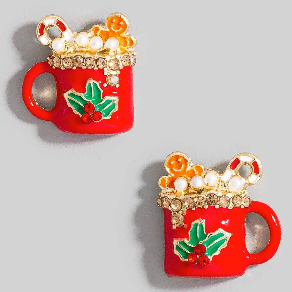 This pair of stud earrings brings a unique enamel and pave christmas themed mug style. Savor the allure of detailed craftsmanship in this exquisite pair of stud earrings. MADE IN CHINA 50% PLASTIC 30% METAL 20% GLASS