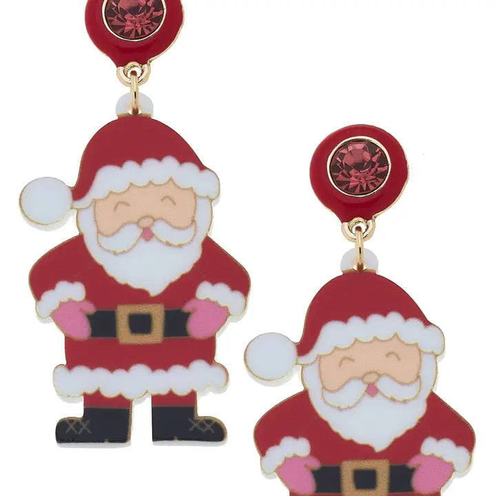Bring jolly vibes to your ears with these Santa-shaped resin earrings. Rhinestone accents make them merry and bright.
