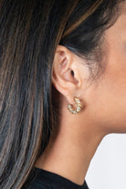 A modern take on a vintage aesthetic — the Rita Hoops in Pavé perfectly blend trendy and timeless into an earring style that you are sure to have forever and ever. A twisted, croissant-style hoop earring with simulated diamond detail — these post-closure hoops are accompanied by our custom earring backings.