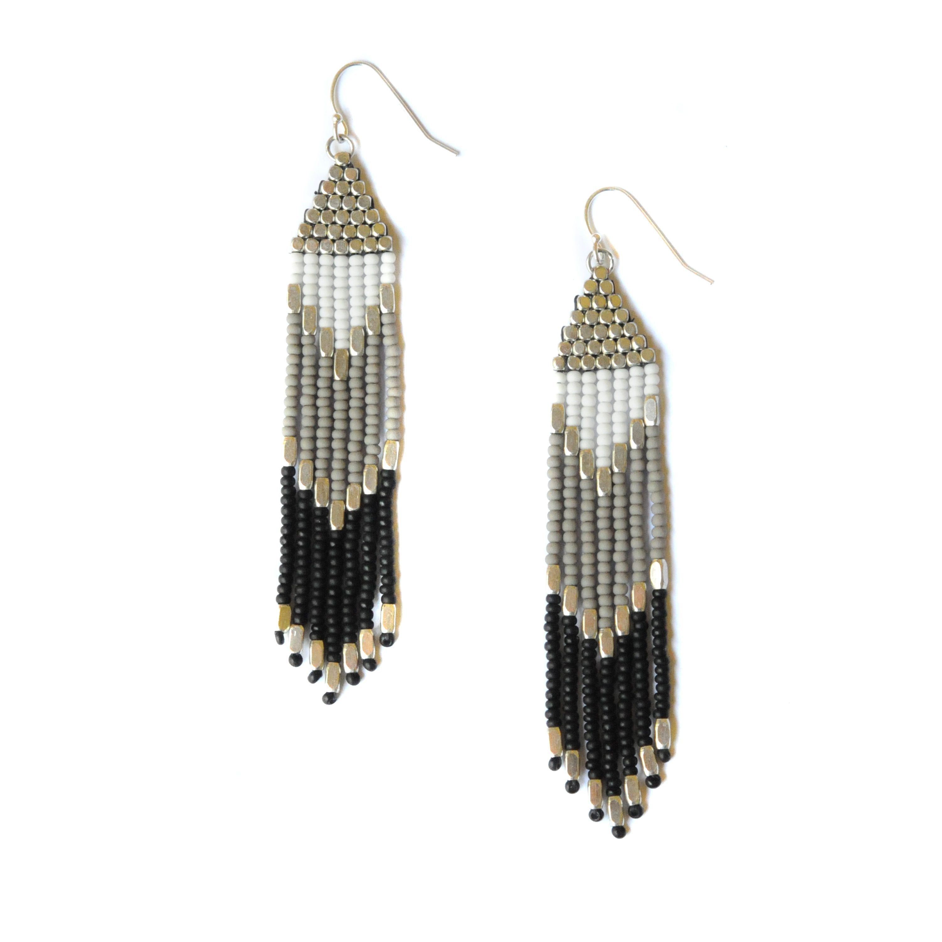 Silver Black/White Triangle Earrings