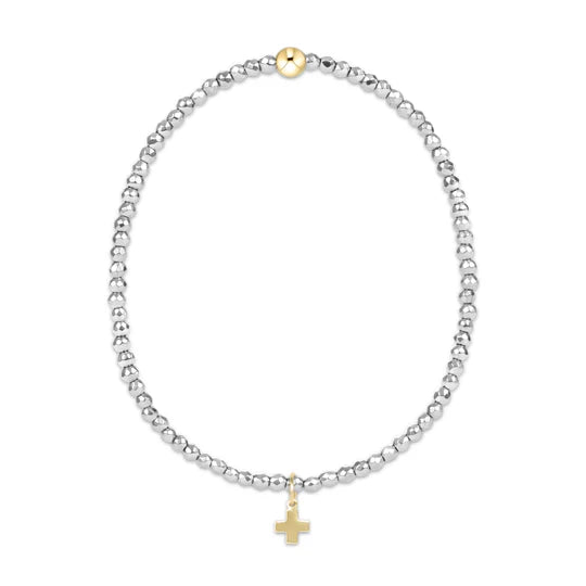 Silver Faceted Hematite Gold Cross Charm 2mm Bracelet