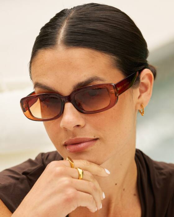 Characterized by a soft transparent frame, our Venice Sunglasses in Amber are made from recycled materials and feature UV400 protection which cuts out 99% of UVA and UVB rays. Designed to be worn all year-round, these sunglasses come complete with a protective fold-down sunglasses case that will keep them safe and scratch-free while in your handbag.