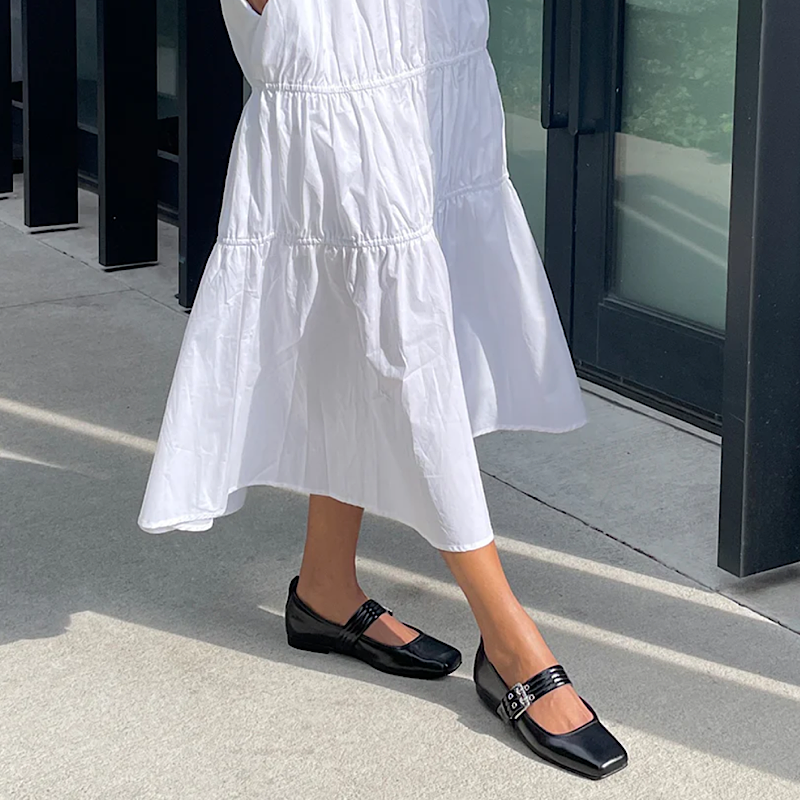 Raise the barre. ARORA takes our fan-favorite ballet flat silhouette in a new direction, adding a chanel-stitched strap and metallic buckle detail for just the right amount of modern edge.