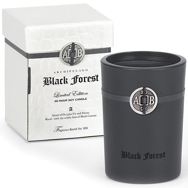 We blend our Black Forest fragrance in small batches and leave the oils to age in barrels. This process allows them to blend, mature, and intensify into a Black Forest fragrance that is sultry and smooth. Poured into a heavy glass container and elegantly packaged, our boxed candles are the perfect gift for yourself or someone else.